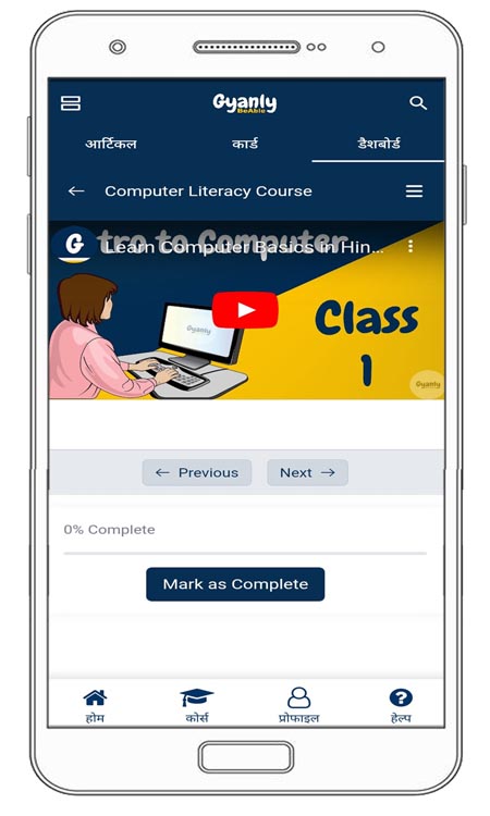 Gyanly App में उपलब्ध कोर्स सेलेक्ट करके क्लास लेने का तरीका इस गाइड में बताया जा रहा है. प्रत्येक स्टेप को फॉलो करें और अपने मन पसंद कोर्स में एडमिशन लेकर क्लास लेकर सीखना शुरु करें.